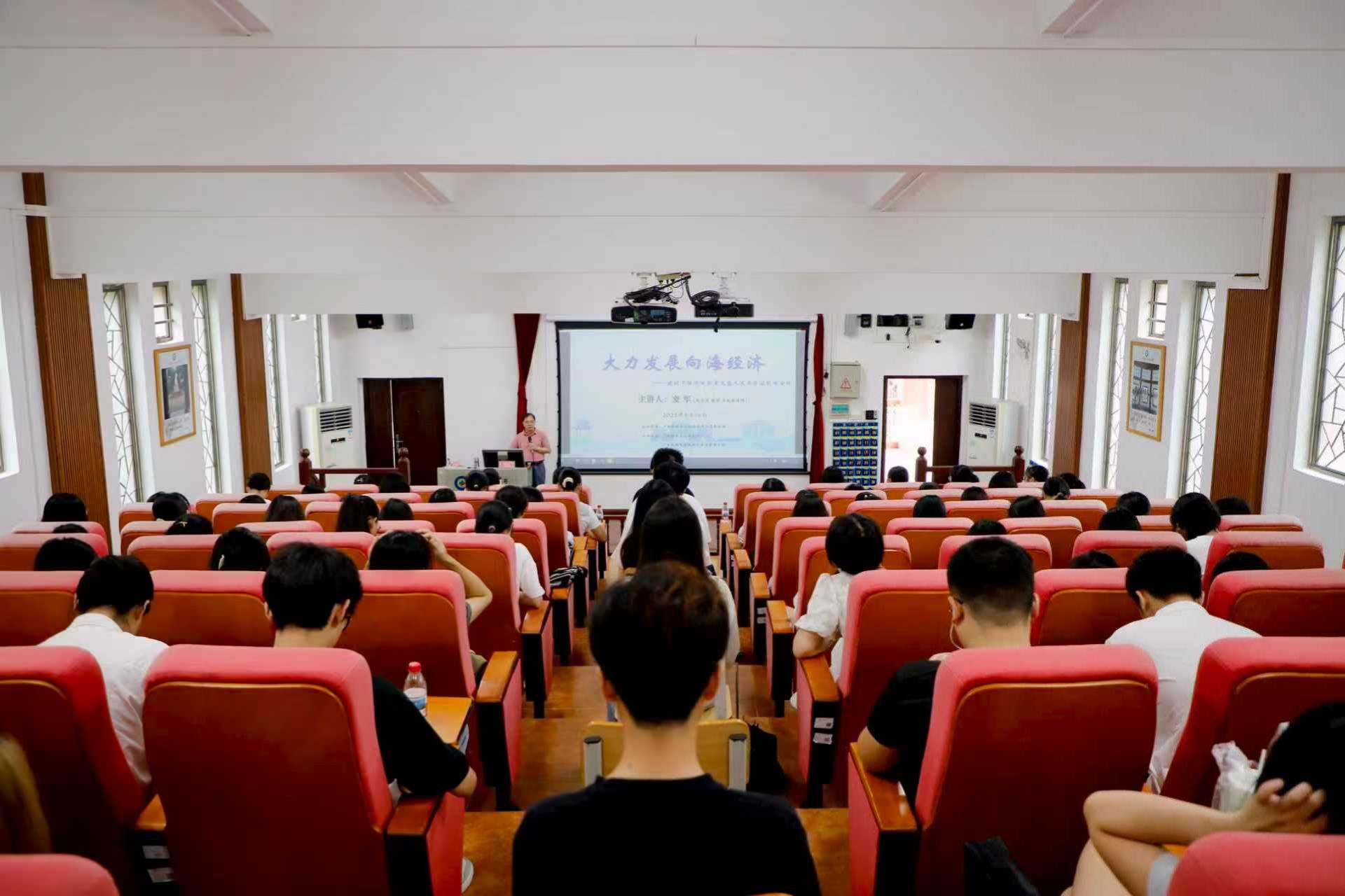 麦军从“向海经济的历史与前瞻、平陆运河是广西向海经济发展的国字号重大工程、建设平陆运河的重大意义及其价值影响分析”三方面入手,围绕广西大力发展向海经济主题展开宣讲,深入浅出地分析建设平陆运河的重大意义及其价值影响。麦军表示,平陆运河是西部陆海新通道骨干工程,是优化提升全国水运网络、加快建设国家综合立体交通网的联网工程,是一条新的“黄金水道”。建成通航后将直接开辟广西内陆及我国西南地区运距最短、最经济、最便捷的出海通道,推动形成陆海内外联动、东西双向互济的全方位开放格局,是伟大的系统工程,对广西和西南地区经济社会发展具有重大的政治、历史和现实意义及其价值影响。