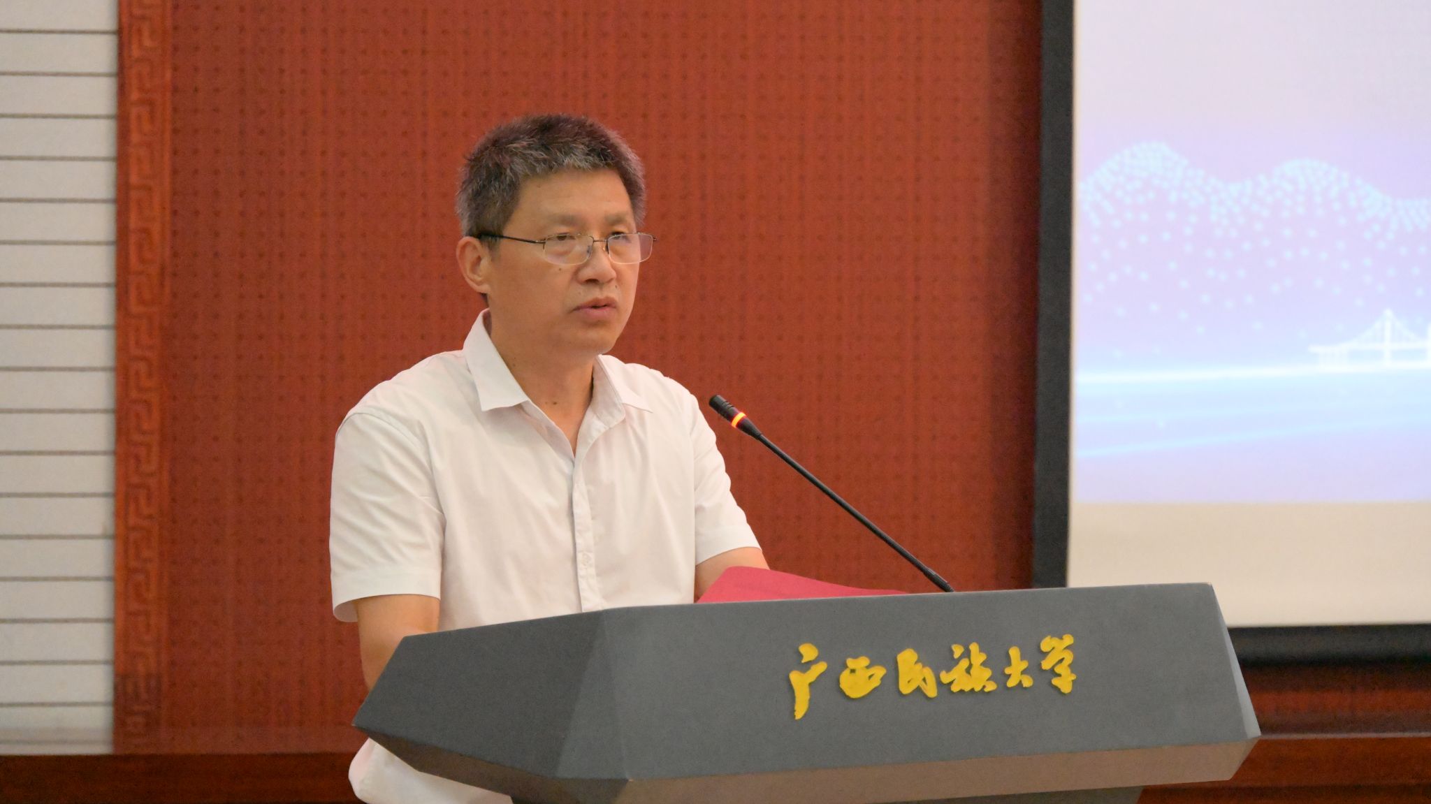 9月24日上午,由广西民族大学主办、政治与公共管理学院、国家民委东盟国家政治文化与公共治理研究中心和边疆治理研究院共同承办的“广西民族大学国家安全与边疆治理高端讲坛”第三讲在相思湖校区科技楼报告厅成功举行。复旦大学“一带一路”及全球治理研究院常务副院长、特聘教授,原上海社会科学院副院长黄仁伟教授作“国家安全视域下中美战略竞争态势及我国战略选择”专题报告。学校党委常委、副校长吕俊彪教授出席报告会并致辞。报告会由政治与公共管理学院院长胡佳教授主持,来自广西社会科学院、广西日报、南宁市委宣传部、南宁市融媒体中心等市直单位的领导以及学院师生共200余人参加报告会。