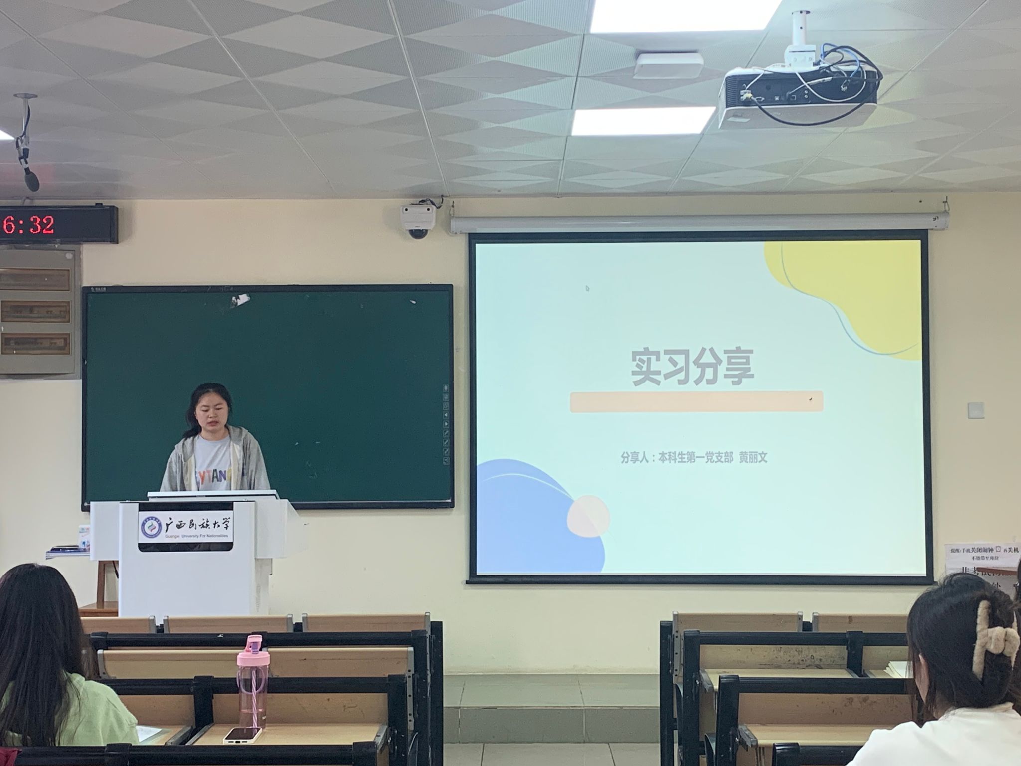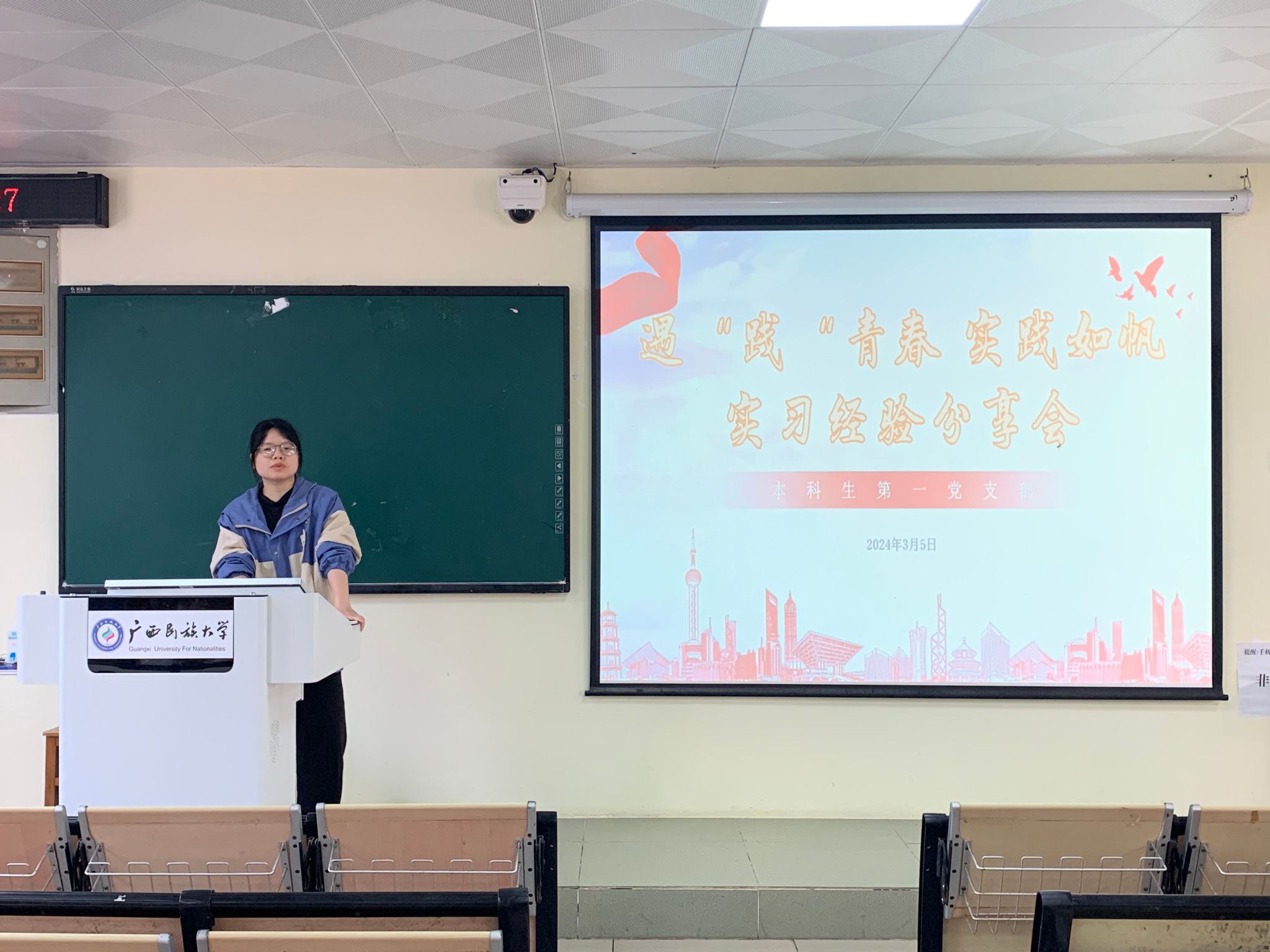 3月5日下午,本科生第一党支部于学友楼207教室召开“遇‘践’青春 实践如帆”实习经验分享会。支部宣传委员王婕同志主持会议,全体同志参会。