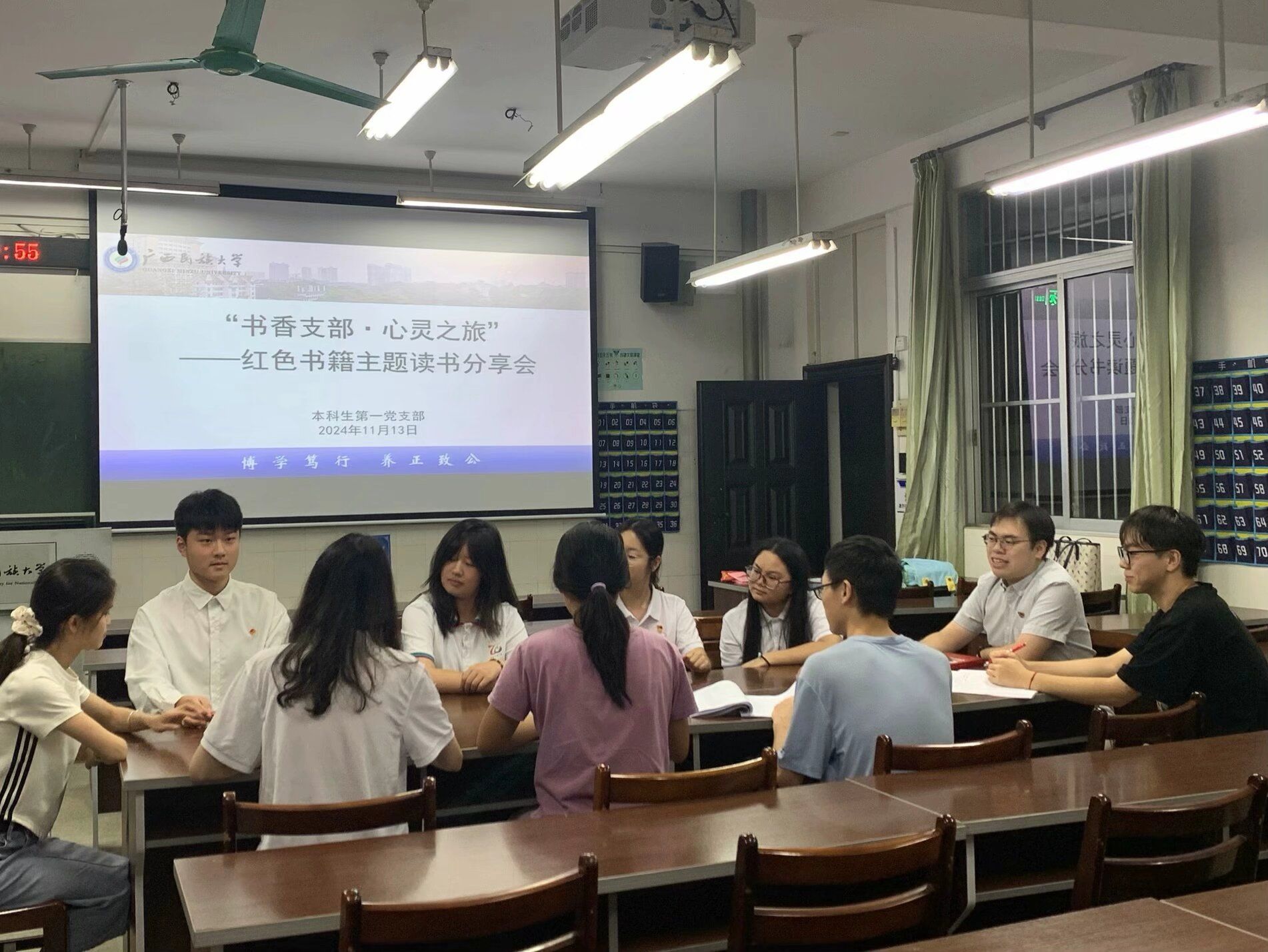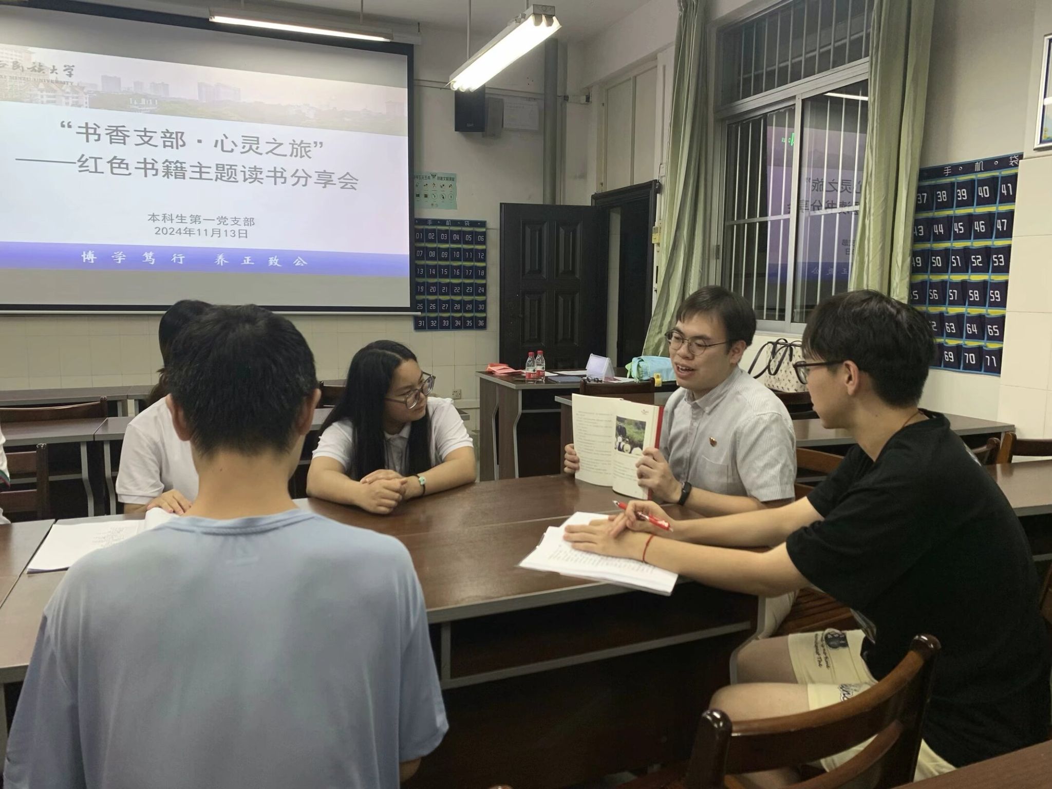 11月13日下午,本科生第一党支部于校友楼402教室召开“书香支部 心灵之旅”读书分享会。支部阮文煜同志主持会议。