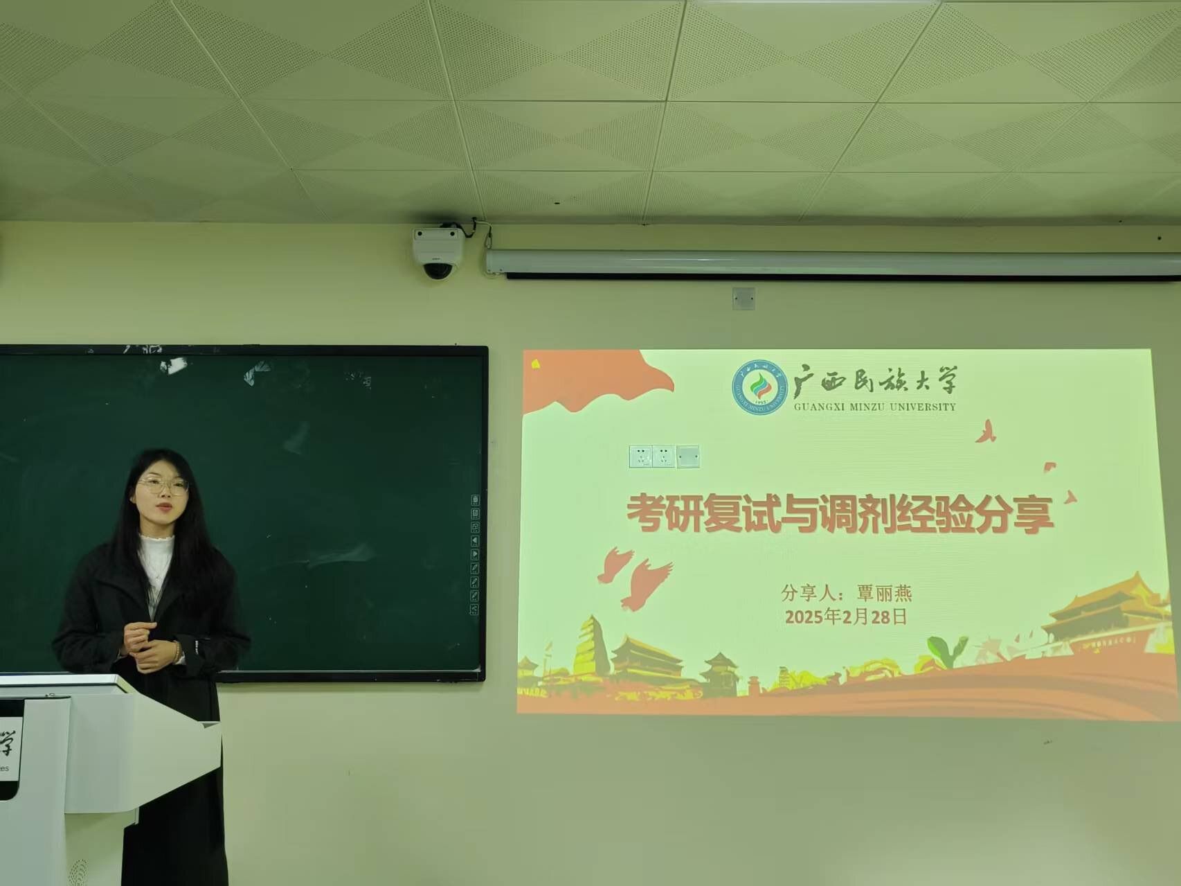 此次分享交流会内容丰富、实用性强,为即将参加复试的同学们提供了宝贵的经验和指导,有效增强了同学们的备考信心和应试能力,为他们在考研道路上取得优异成绩奠定了坚实基础。(初审:农植媚、王妃 复审:韦德宗 终审:罗源)