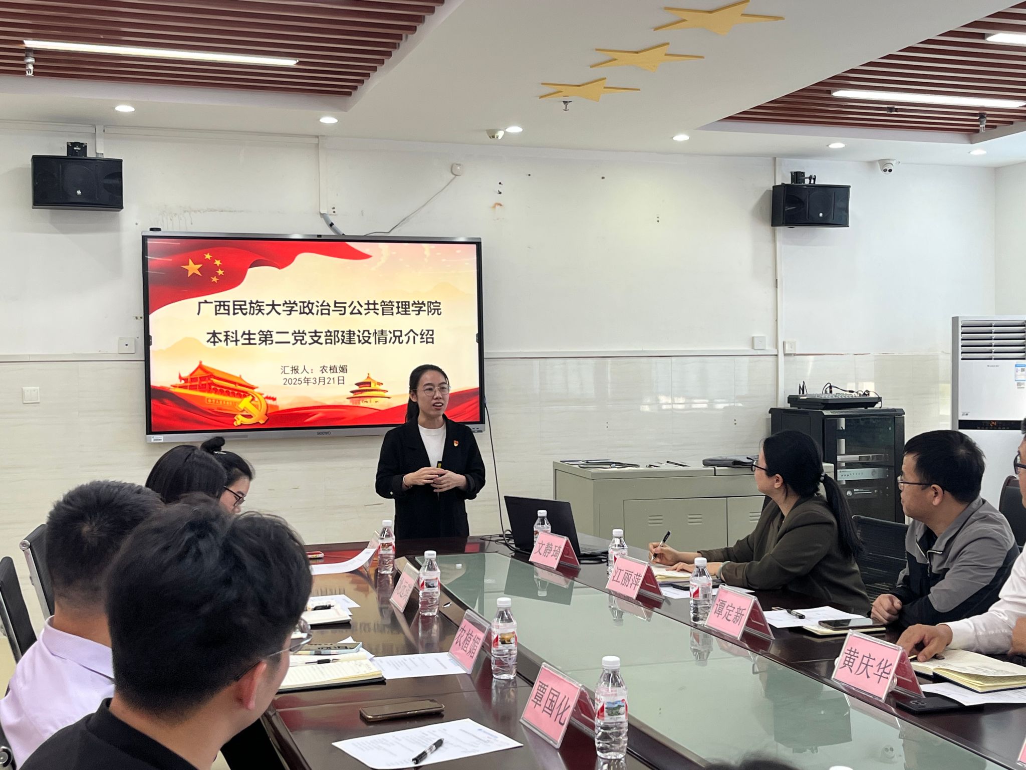 为深化高校基层党组织建设,探索全国样板党支部创建新路径,3月21日下午,政治与公共管理学院副院长覃国化带领学院本科生第二党支部赴广西交通职业技术学院航海工程学院开展样板党支部建设经验交流。航海工程学院党总支书记黄庆华及双方党支部代表参加座谈。