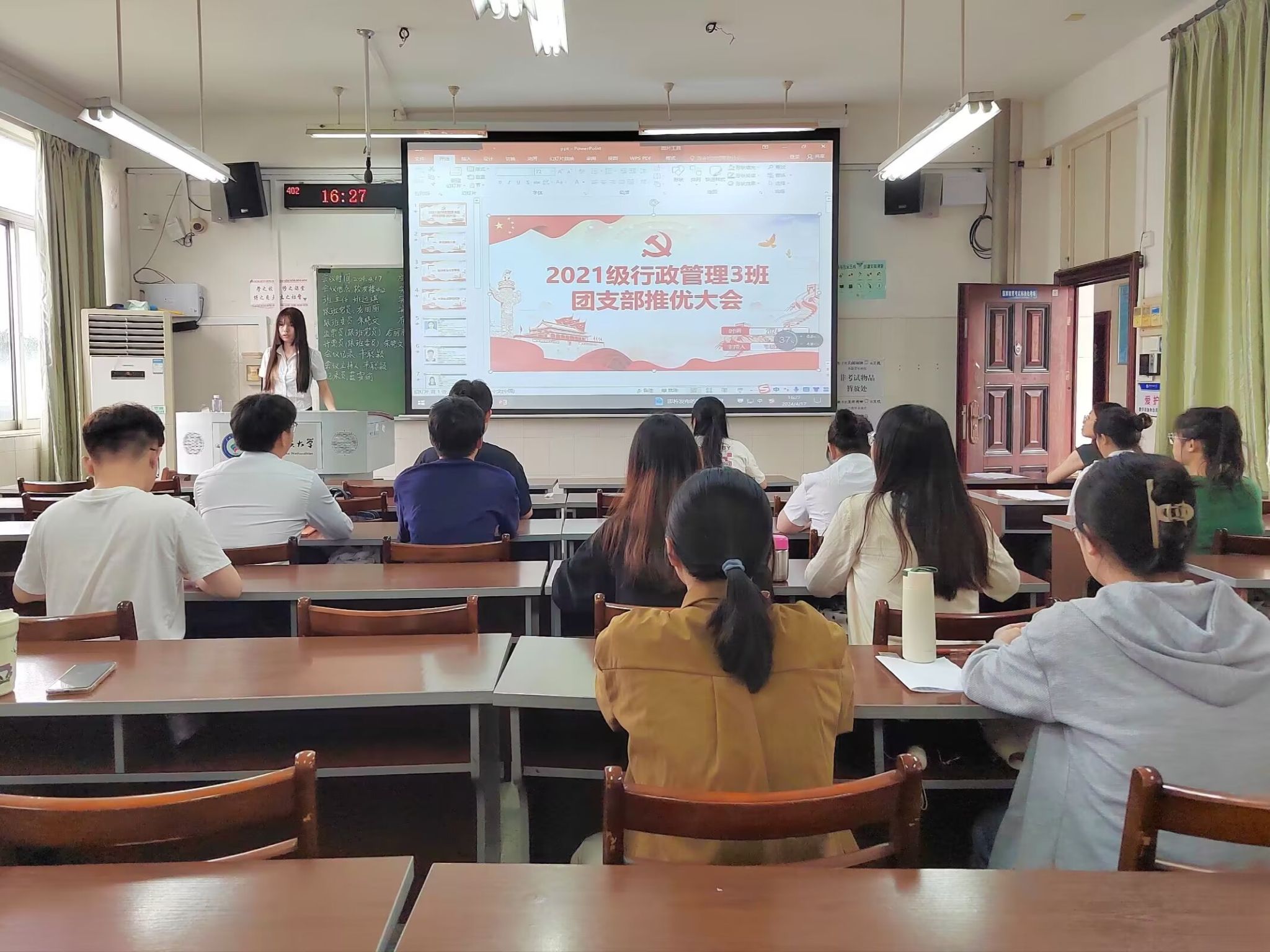4月17日,2021级行政管理3班团支部于校友楼403室召开入党发展对象推优会。会议由团支书韦聪颖主持,跟班党员龙丽丽、跟班委员朱晓文及班级全体团员参会。