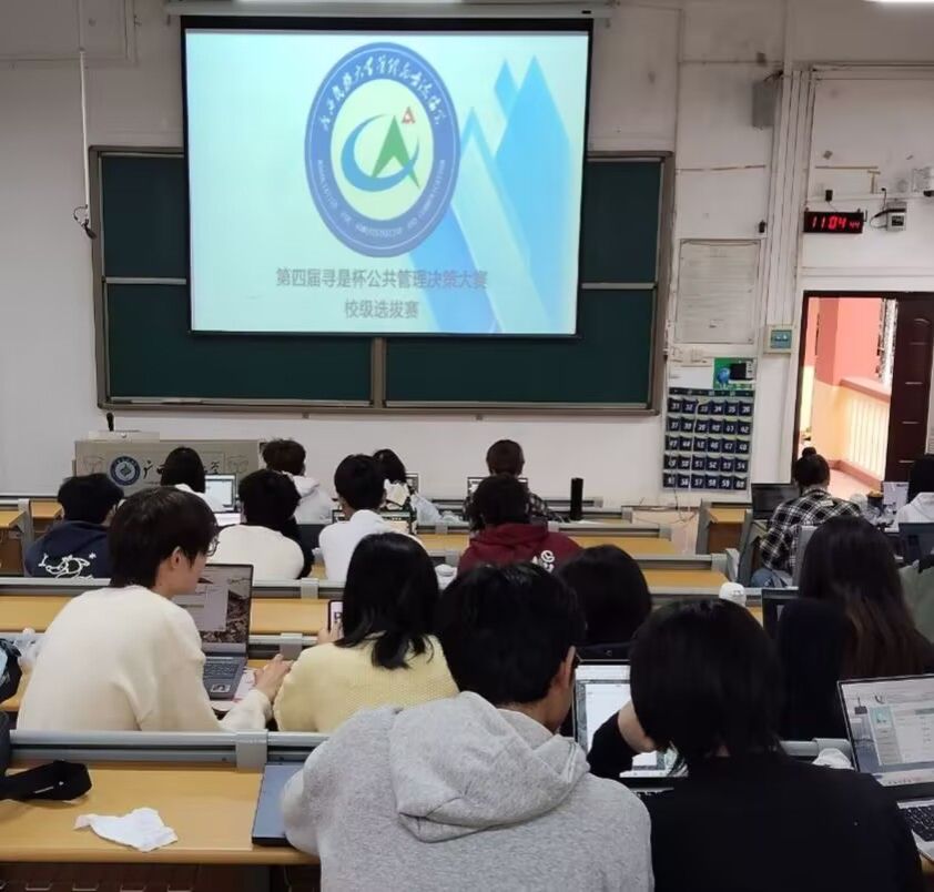 为推进公共管理专业实践教学工作,引导学生关注我国公共管理热点问题,培养具备良好理论素养和分析能力的应用型人才。3月15日上午,由管理与交流协会协办的第四届“寻是杯”全国大学生公共管理决策模拟大赛校内选拔赛于博学楼三教四梯圆满举办。