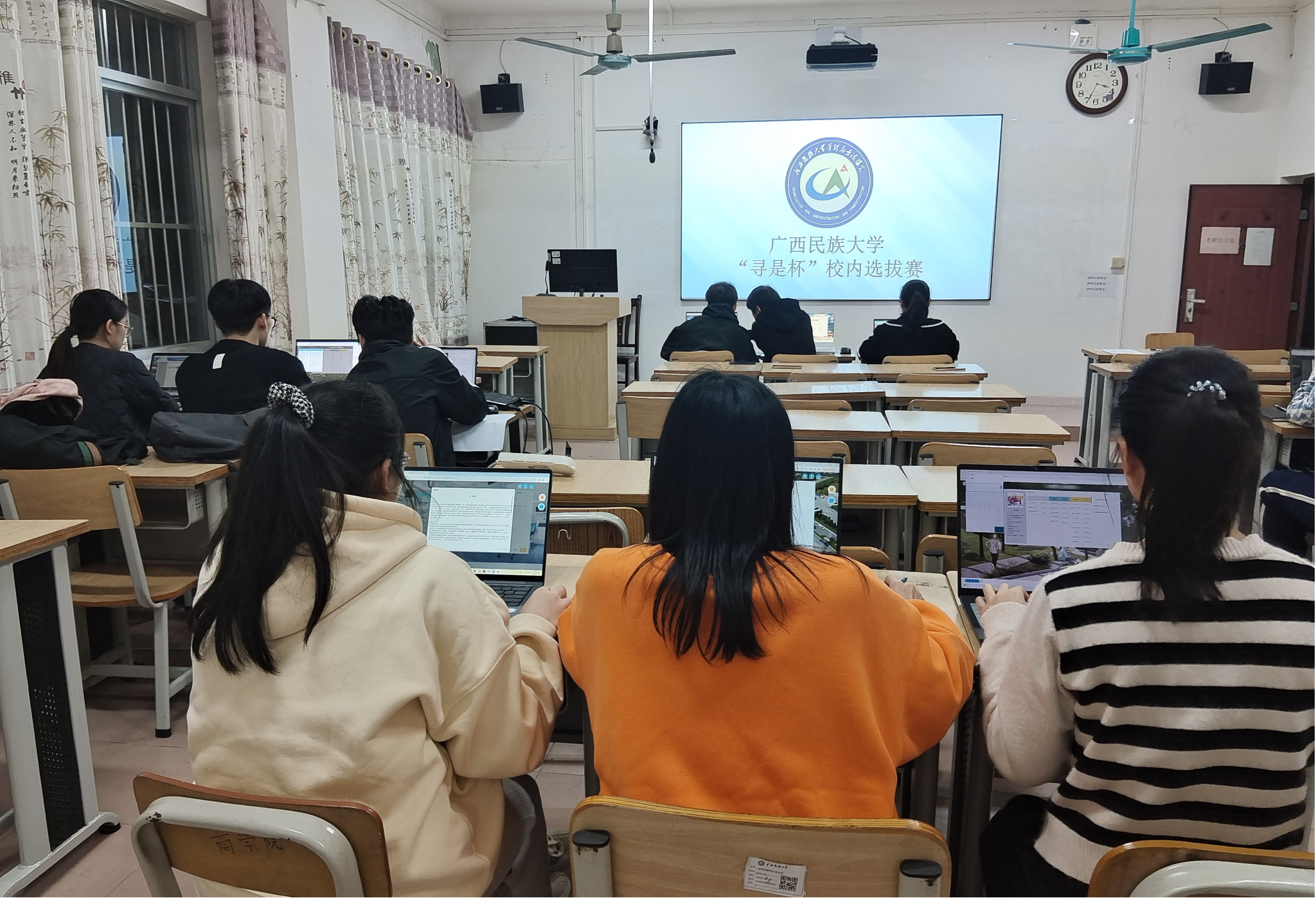 为推进公共管理相关专业实践教学工作,引导学生关注我国公共管理热点问题,3月8日晚,由管理与交流协会协办的第三届“寻是杯”全国大学生公共管理决策模拟大赛校内选拔赛于博学楼104教室顺利举行。此次选拔赛共有来自公共管理系行政管理专业的四支队伍参加。