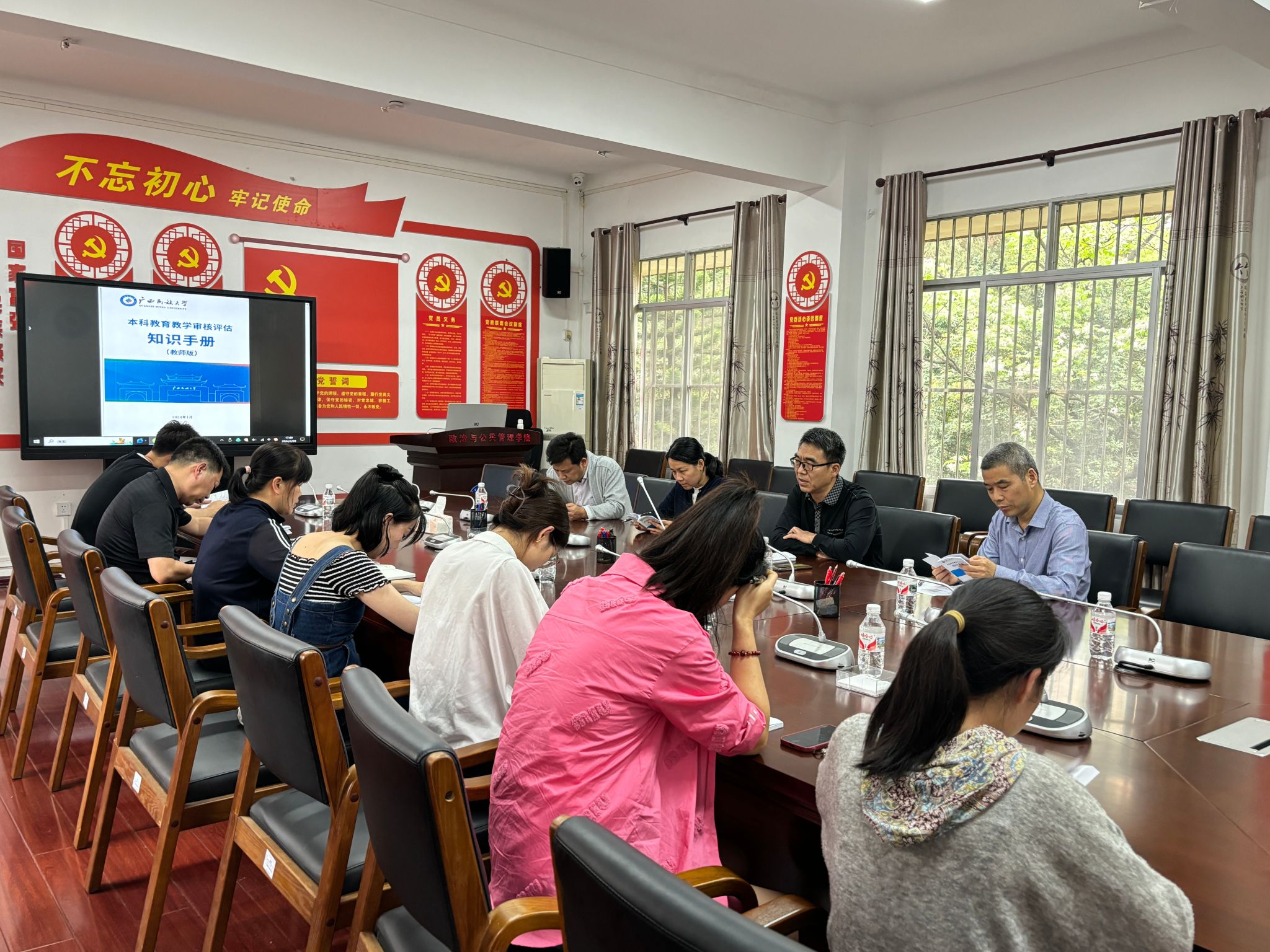 3月19日下午,学院召开本科教育教学审核评估工作推进会,学院院长唐贤秋汇报学院审核评估工作推进情况、重点任务完成情况、特色亮点和问题整改情况等,并领学《本科教育教学审核评估知识手册》。学院全体教师通过学习,深入了解新一轮审核评估指导思想、工作目标、基本原则等知识。会议指出,本科教育教学审核评估是今年学校的中心工作,学院全体师生要进一步提高政治站位,统一思想,深刻领会本科教育教学审核评估对推进学院高质量发展的重要作用,以高度的责任感和使命感扎扎实实做好日常教育教学工作。