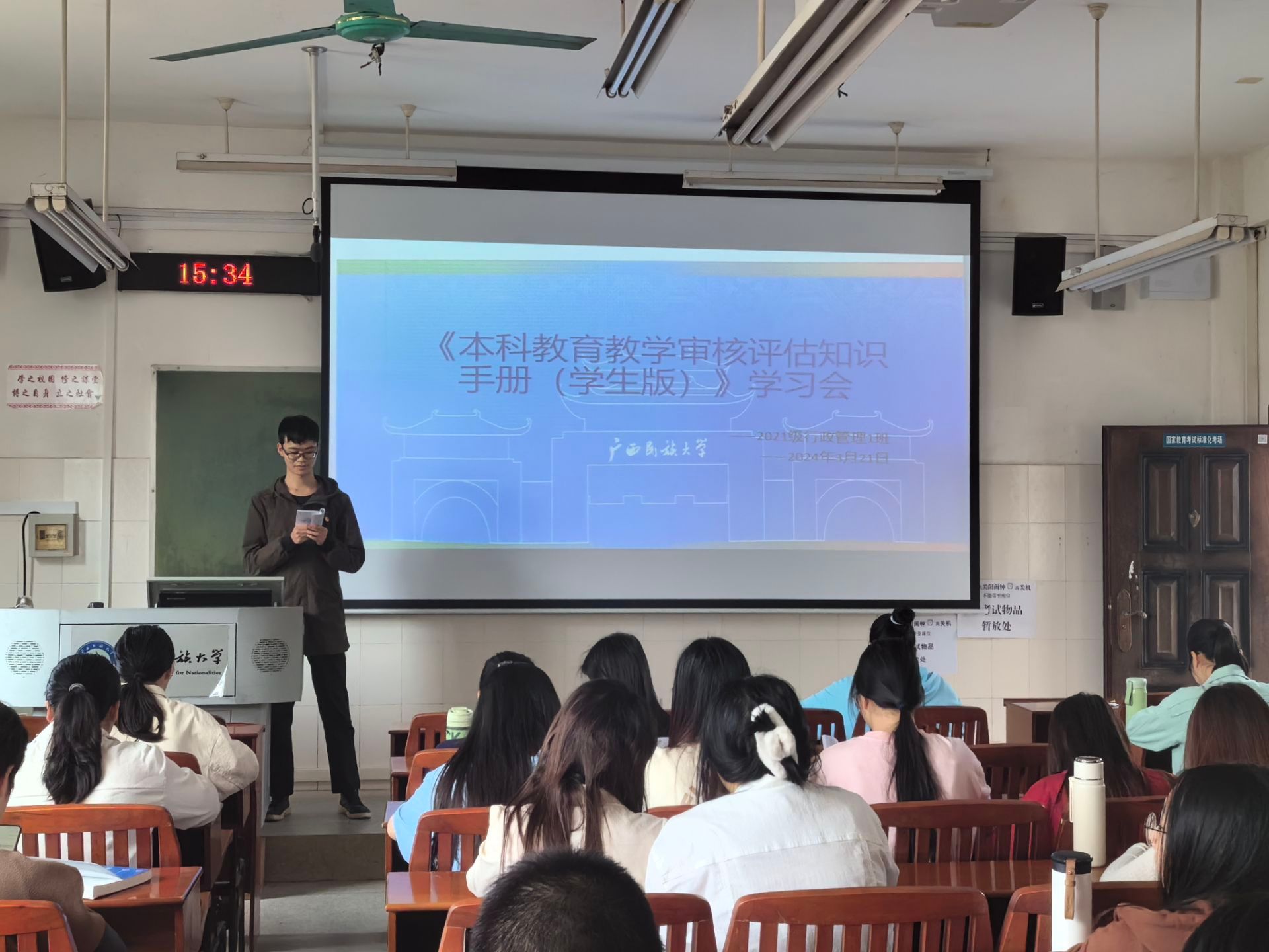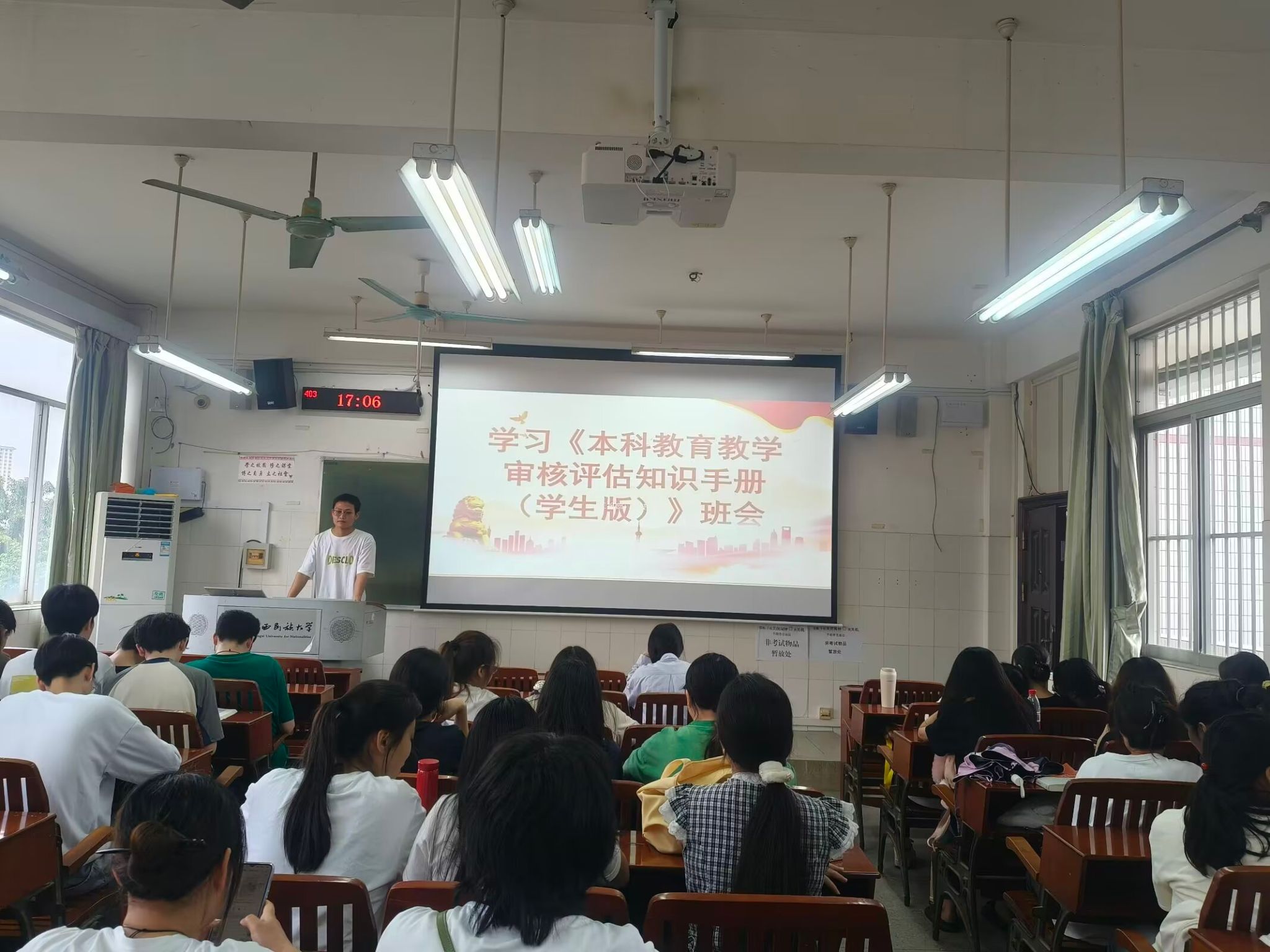 为贯彻落实学校本科教育教学审核评估工作部署,增进m88明昇学生对学校本科教育教学审核评估工作的了解,以自身实际行动迎接学校审核评估工作顺利进行,近期,m88明昇采取班级主题班会、个人自学等方式开展《本科教育教学审核评估知识手册》专题学习。