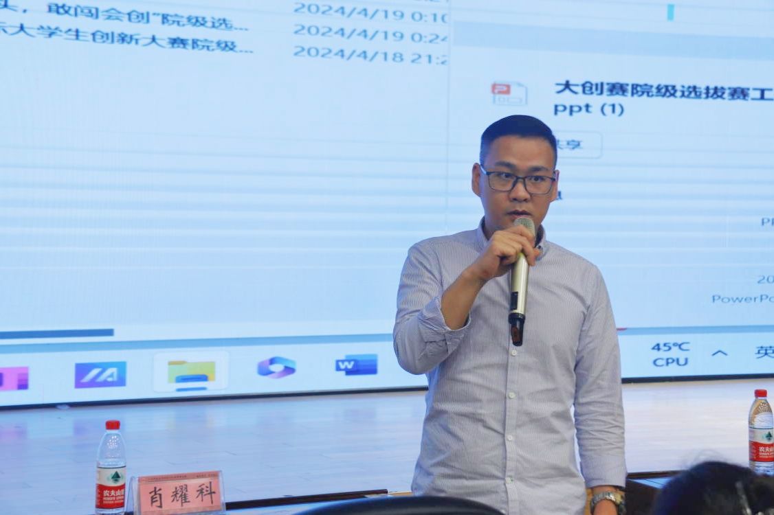 肖耀科老师对大赛进行点评。他对同学们勇于参与社会实践和创新创业比赛的良好精神风貌给予肯定,并给大家三点建议:一是选题要注重创新性,;二是策划要思路清晰,力求小项目做精做强;三是重视对项目未来的考虑,成熟项目要不断完善升级,初创项目要继续坚持深入发展。
