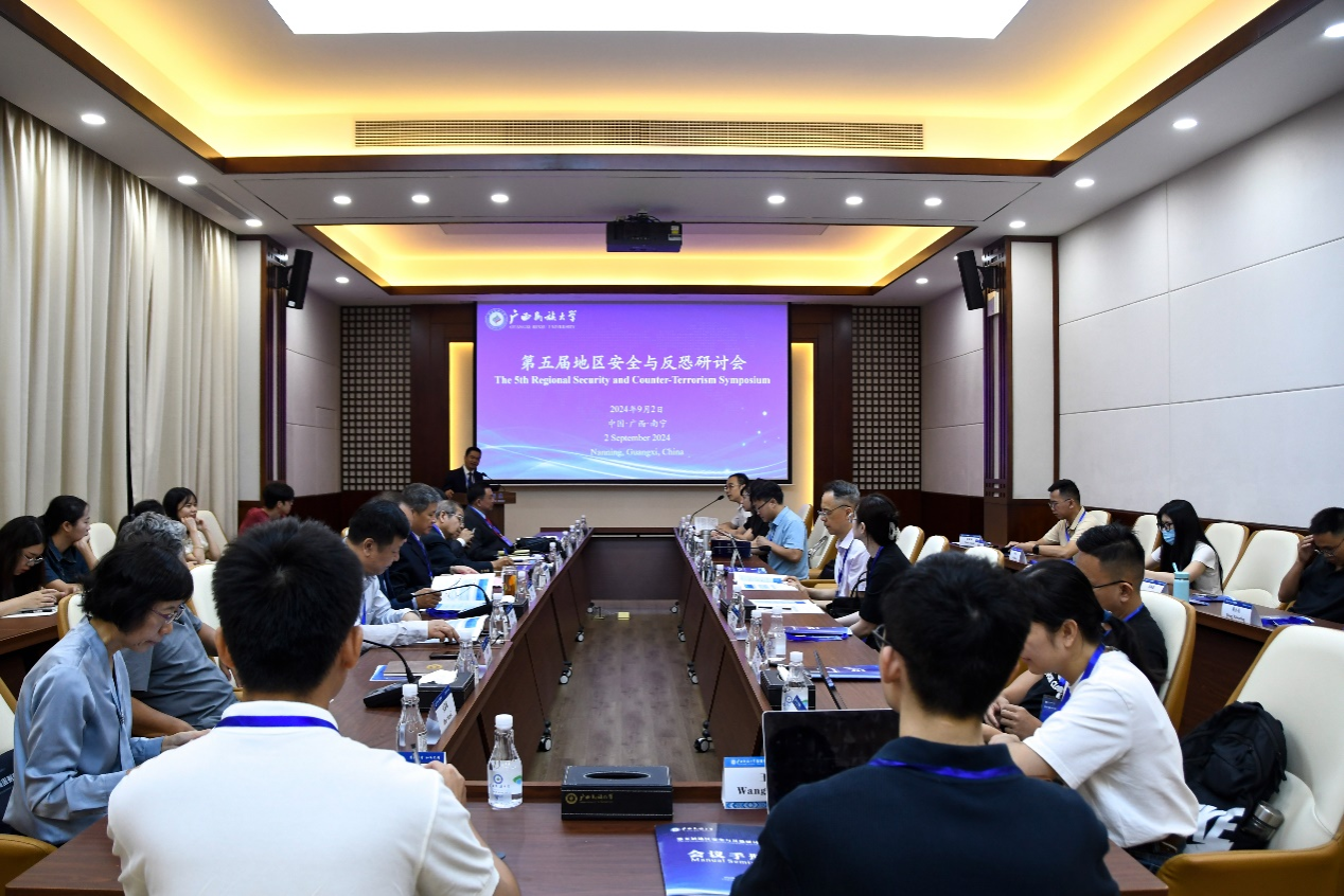 9月2日,由广西民族大学东盟学院/中国—东盟区域国别研究院、广西民族大学中国—东盟地区安全与反恐战略研究院主办,教育部国别和区域研究基地广西民族大学东盟研究中心、国家民委东盟国家政治文化与公共治理研究中心、广西民族大学中国—东盟海上安全研究中心承办的第五届地区安全与反恐研讨会在南宁成功举行,广西民族大学领导、马来西亚拿督、国会上议员阿旺•沙利延(Awang Bin Sariyan)教授在开幕式上致辞,开幕式由广西民族大学东盟学院党委书记、常务副院长、中国—东盟区域国别研究院院长、中心主任叶兴艺教授主持。